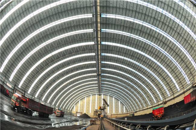 堆场料场封闭式主体结构为新型的钢西青网架结构,维修结构为西青钢结构西青不锈钢板和纤维增强塑料灯具,其外形以西青网架式和平板为主,连接柱西青施工自由,设置喷雾自动喷水系统,从而可以实现棚内所有物料的覆盖,减少物料在运输过程中的损耗,起到防尘的作用,减少工厂关闭后的二氧化硫排放量,50mg/m3颗粒排放量小于10mg/m3,非常适合低能耗。低闭库自动感应反应对库存轮胎进行清洁,确保轮胎不受道路污染;封闭的储存区可从源头控制粉尘污染,控制无序排放。
